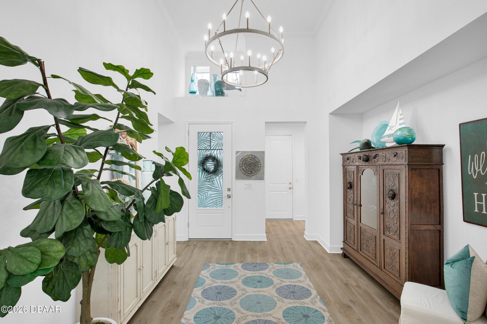 Picture-perfect Parrot--this one is a must-see! This Beach Collection home offers 3 bedrooms, and a versatile bonus/hobby room, giving you flexibility for the way you live. You'll LOVE the many custom features and upgrades throughout this beautifully designed home.From the moment you step inside, your eyes are drawn to the stunning rustic wood ceiling in the living room, creating a warm coastal vibe. The 8-foot doors and crown molding enhance the open, airy feel, while luxury vinyl plank flooring flows seamlessly throughout. Recessed lighting and ceiling fans are already in place for comfort and style.The kitchen, dining, and great room area truly shine with gorgeous quartz countertops, 42'' cabinets, double ovens, and a gas cooktop. The sought-after white cabinetry, contrasting gray island, and striking blue backsplash make a bold statement. Custom window shades in the dining room, pendant lighting in the kitchen, and a chandelier over the dining area complete the space beautifully. The living room is equipped with a Sonos sound system for added enjoyment.The primary bedroom continues the elegance with a matching rustic wood ceiling, custom window shades, a fabulous accent wall, and designer closets. The en-suite bath features stylish gray cabinetry and a full glass shower for a sleek, modern touch.The guest bathroom is filled with natural light and includes quartz countertops, and a tiled tub/shower. The third bedroom, currently used as an office, includes a designer closet and large window--offering plenty of options.The bonus hobby/flex room off the kitchen is a standout feature--perfect as a guest space, TV room, office, or even a large pantry. The possibilities are endless!A separate laundry room includes a full-size washer and dryer, beautiful Admiral Blue cabinetry, and a convenient sink.Step outside to the extended lanai--an ideal Florida outdoor living space--complete with a ceiling fan, gas stub for grilling, and even an outlet for a hot tub.This home is packed with upgrades and thoughtful details. Come experience Florida living at its very best! Latitude Margaritaville Daytona Beach is a premier 55+ private, gated community designed for active, resort-style living. Enjoy three heated pools, including a spectacular resort-style main pool, an indoor lap pool, and an outdoor sports pool. Fall in love with the exclusive PRIVATE BEACH CLUB, featuring an oceanfront pool and breathtaking coastal views.Soak up the vibe with live music every afternoon at the Bar & Chill Restaurant, or grab a bite at the lively poolside Sandbar. Stay energized at the state-of-the-art Fins Up Fitness Center, catch a show at the Mango Theater, and enjoy amenities like a dog park, pickleball, and tennis courts.Come experience this truly FINtastic community--where every day feels like a vacation.***Refrigerator/Freezer in hobby room does NOT convey***